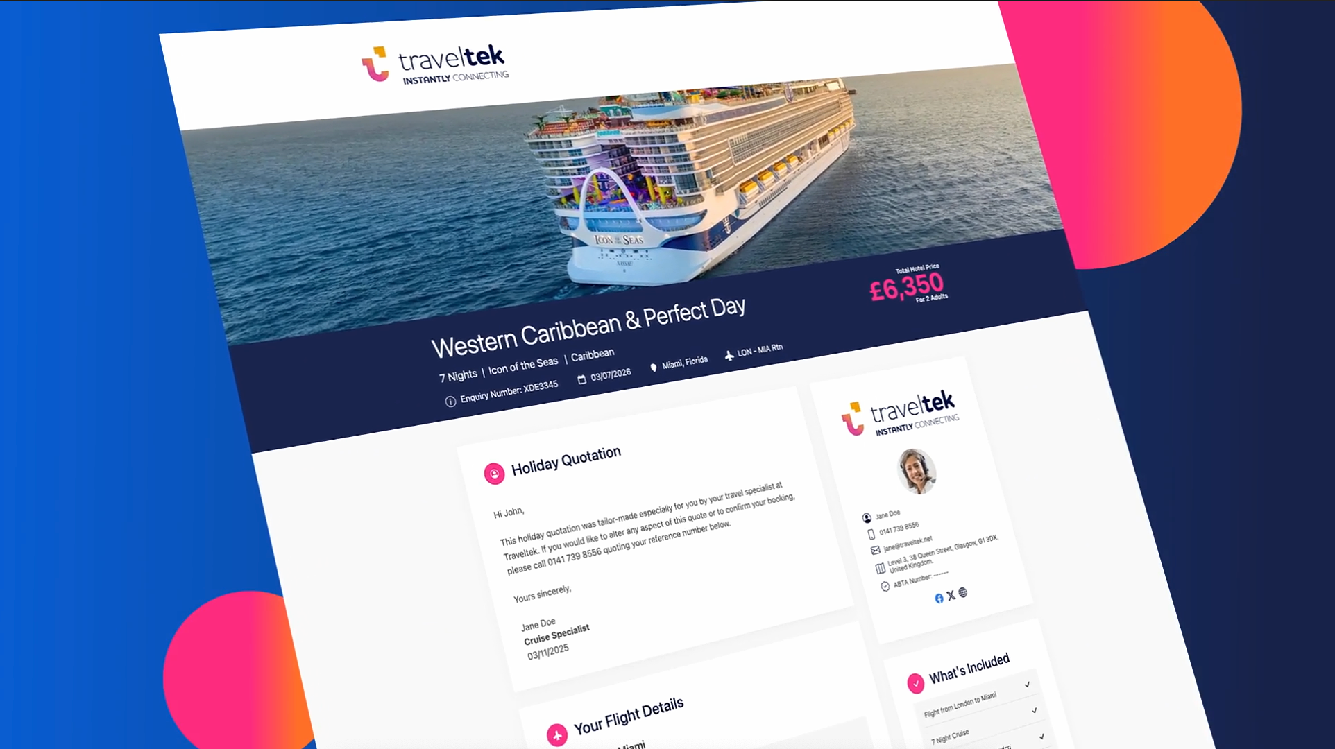 Powered by Traveltek’s 25 years of supplier integrations, providing access to stunning 4K images, videos, detailed cruise itineraries, deck plans, and hotel information.